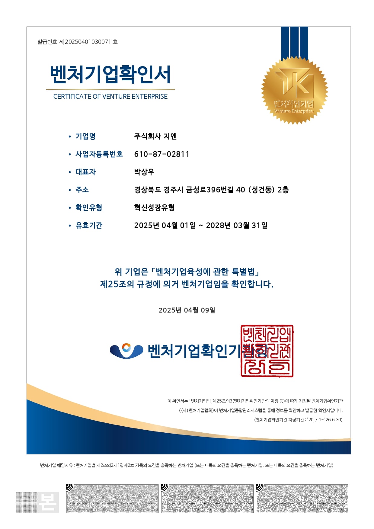 기술을 넘어선 신뢰를 향해, (주)지엔의 끊임없는 열정과 무한한 책임감이 자리하고 있습니다.